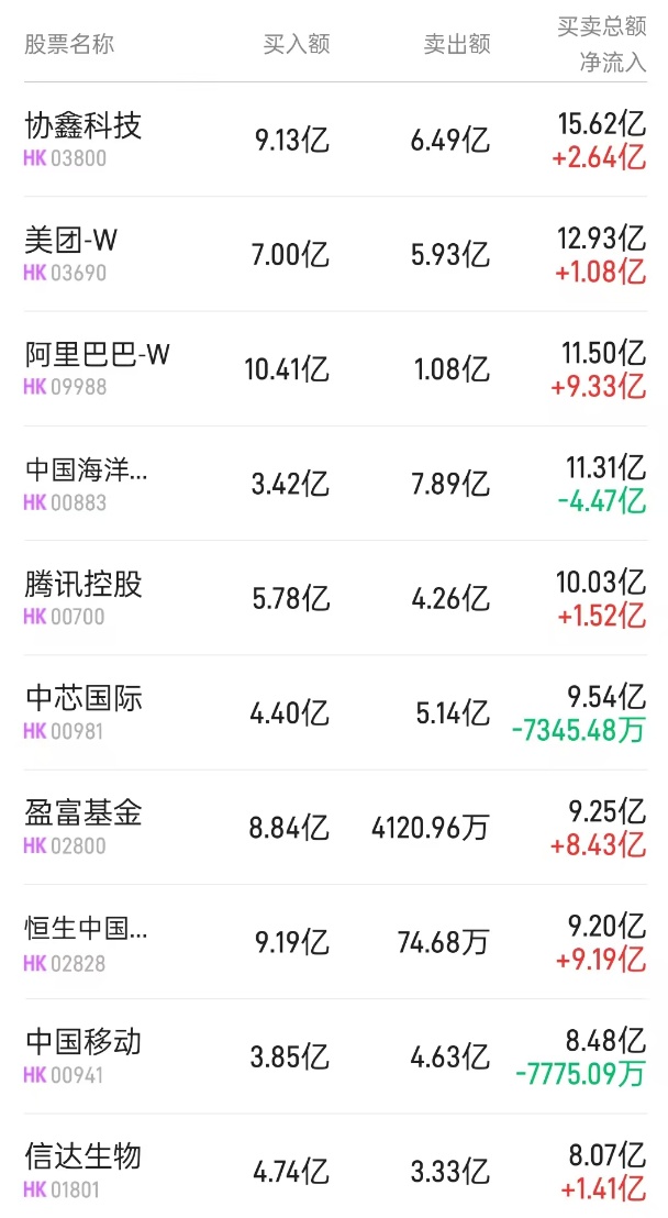 北水资金加仓科网股,阿里巴巴-W(09988)、美团-W(03690)、腾讯(00700)分别获净买入17.69亿、8.87亿、3.68亿港元。消息面上,瑞银投资银行中国互联网研究主管方锦聪表示,内地互联网行业的竞争已趋向缓和,平台走向合作,将有利于提升变现率,进而带动收入增长和利润率提升。目前内地互联网业的市盈增长率约1.1倍,处于历史平均水平,但若考虑内地刺激经济政策落地、竞争缓和等因素,相信互联网板块估值仍被低估,还有上行空间,PEG升至1.3倍属较合理期望。