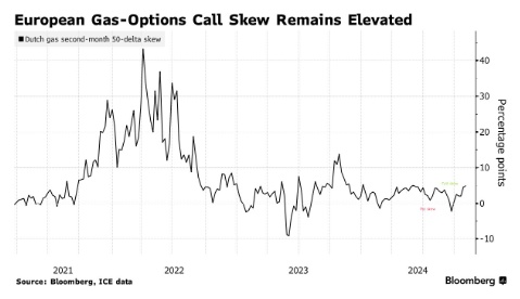 据了解,天然气交易商已转向期权市场,以对冲今年冬季的一系列风险,包括与全球其他地区对液化天然气货物的更激烈竞争以及俄罗斯-乌克兰过境协议即将结束。中东冲突的升级和寒冷天气导致的需求突然增加也起到了一定作用。