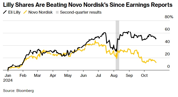 自上一次业绩报告发布以来,礼来股价表现大幅优于诺和诺德
