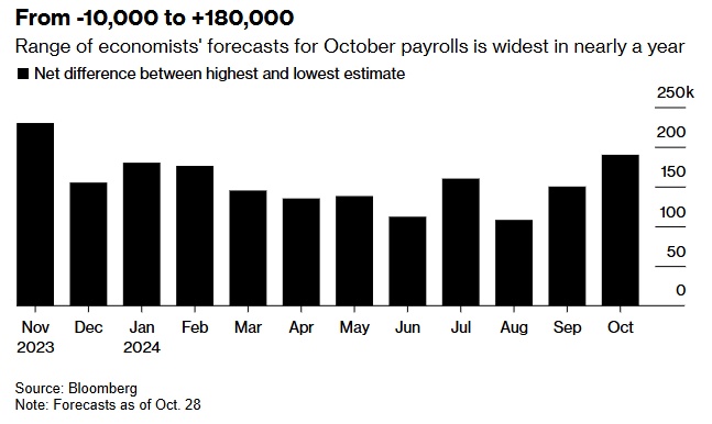 经济学家对 10 月份非农就业人数的预测范围为近一年来最广