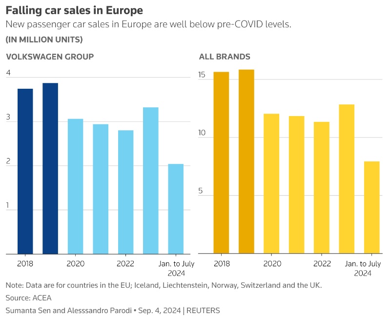管理层表示,由于工人和能源成本高昂,德国工厂的运营成本远高于竞争对手,而欧洲汽车市场已较疫情前的水平萎缩,中国此前对该品牌的强劲需求也已减弱。