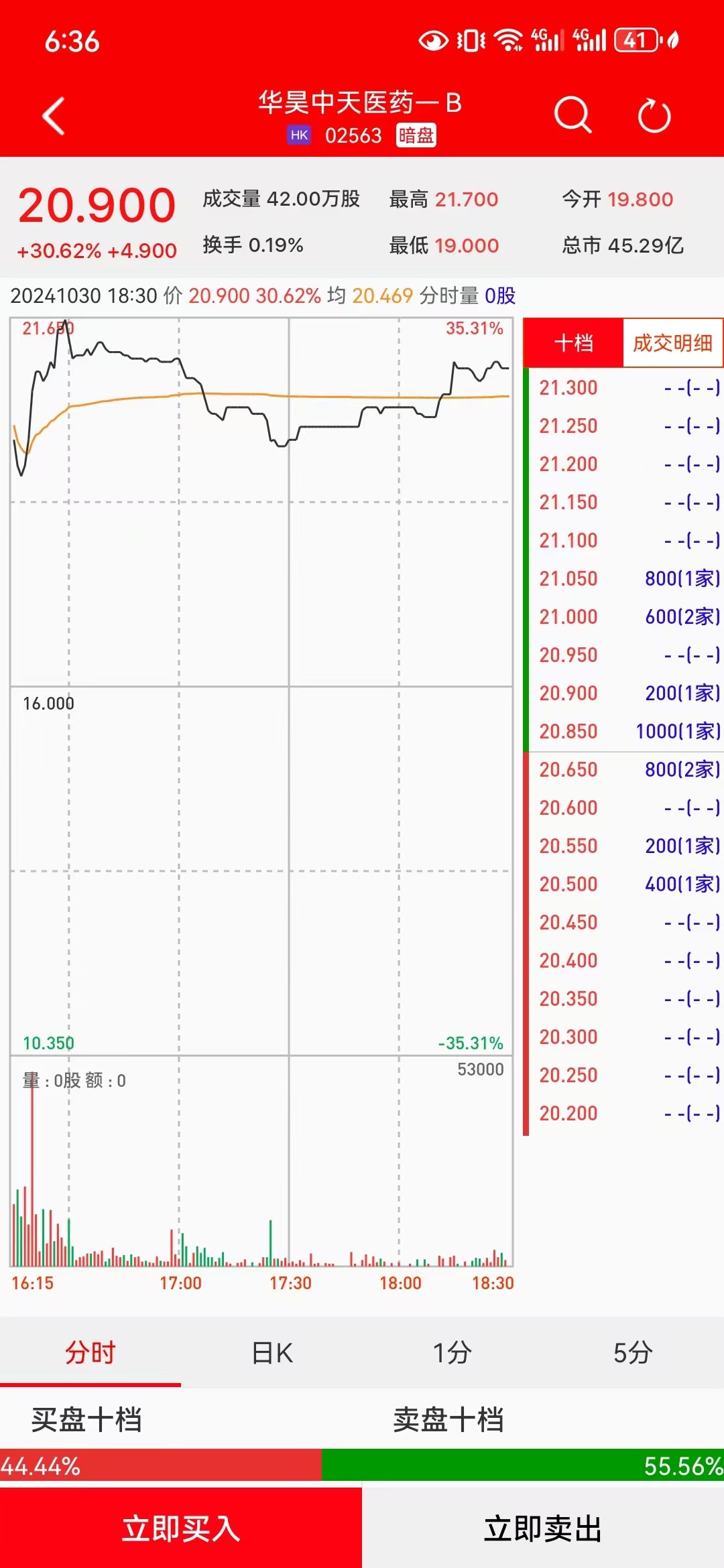 智通财经APP获悉,华昊中天医药-B(02563)将于10月31日(周四)在香港挂牌。截至收盘,利弗莫尔证券暗盘交易显示报价20.90港元,较招股价16港元上涨30.62%,每手200股,不计手续费,每手赚980港元。