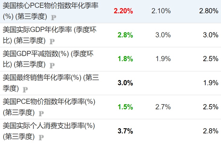智通财经APP注意到,美国政府周三公布的初步估计数据显示,经通胀因素调整后的第三季度GDP折合成年率增长2.8%,前一季度为增长3%。彭博对经济学家的调查预测中值为2.9%。