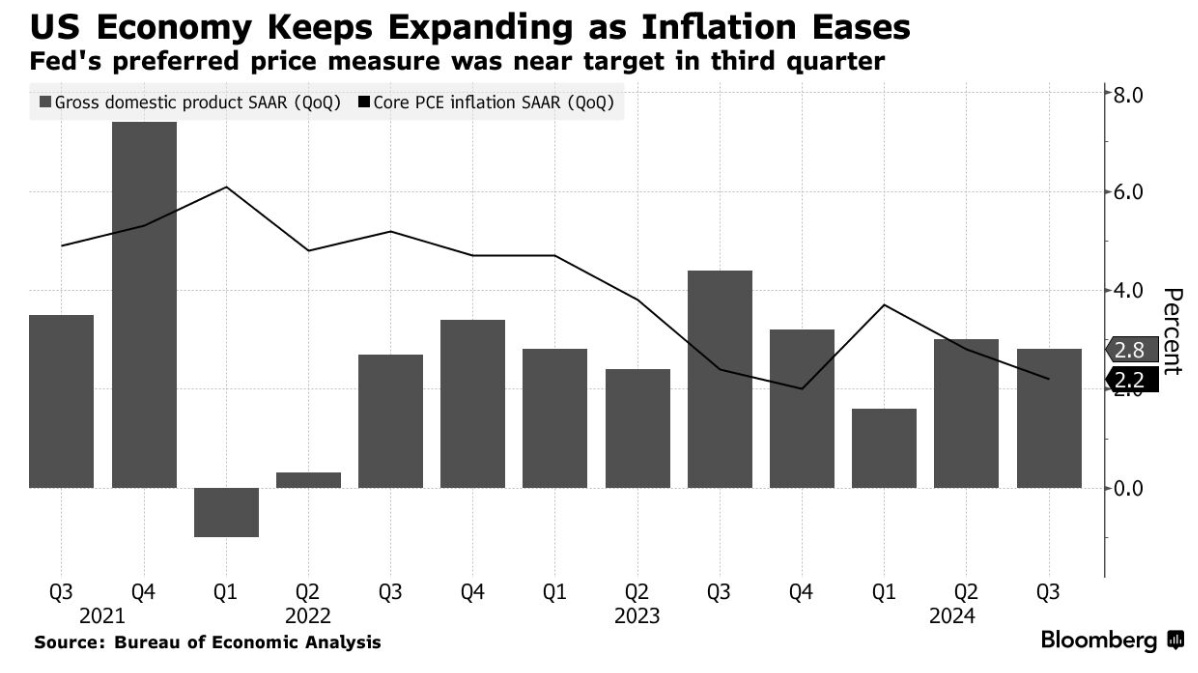 由于大选前家庭购买力加速且联邦政府增加国防开支,美国经济在第三季度强劲增长。