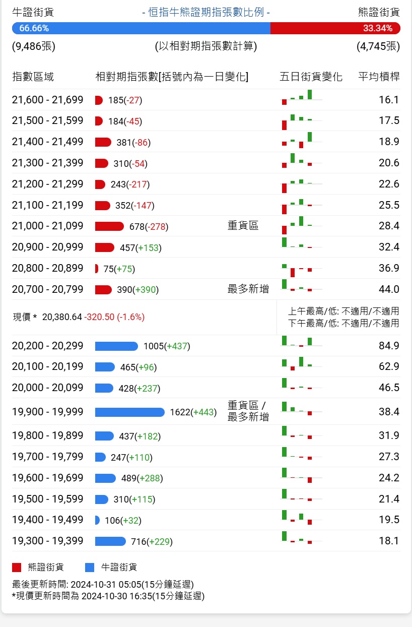 智通财经APP获悉,截至10月31日,恒指最新的牛熊街货比例为67:33。