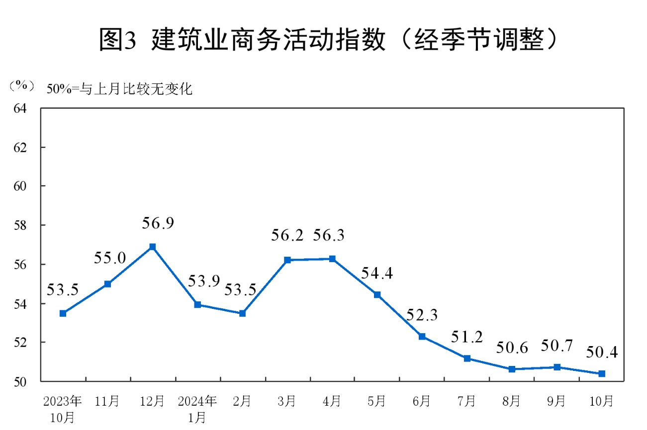 分行业看,建筑业商务活动指数为50.4%,比上月下降0.3个百分点;服务业商务活动指数为50.1%,比上月上升0.2个百分点。从行业看,铁路运输、水上运输、航空运输、邮政、资本市场服务、生态保护及公共设施管理等行业商务活动指数均位于55.0%以上较高景气区间;批发、住宿、互联网软件及信息技术服务、房地产、居民服务等行业商务活动指数低于临界点。