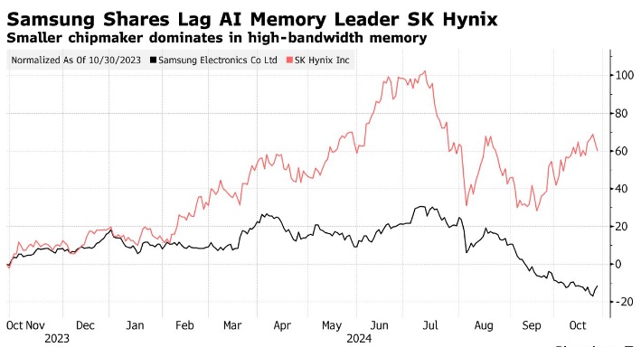 三星今年市值已缩水约四分之一,因为这家一度占据主导地位的内存芯片制造商难以让其最新芯片获得英伟达(NVDA.US)用于人工智能加速器的认证。这为竞争对手SK海力士和美光科技(MU.US)在利润丰厚的高带宽内存(HBM)领域占据绝对领先地位提供了难得的机会。SK海力士上周公布营业利润7.03万亿韩元,创下了其记录。