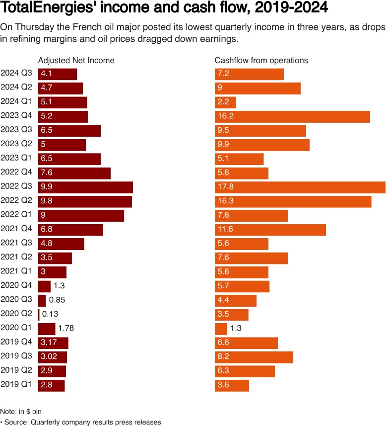 在经历了近年来异常高企的石油和天然气价格之后,随着欧洲地区等经济体疲软的增长削弱了需求,这家法国能源巨头及其同行的利润正在逐渐正常化。在一直用巨额支出回报投资者的同时,这给这些公司的资产负债表带来了压力。