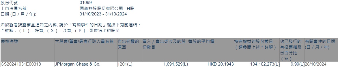 智通财经APP获悉,联交所最新资料显示,10月28日,摩根大通减持国药控股(01099)109.1529万股,每股作价20.1943港元,总金额约为2204.27万港元。减持后最新持股数目约为1.34亿股,最新持股比例为9.99%。