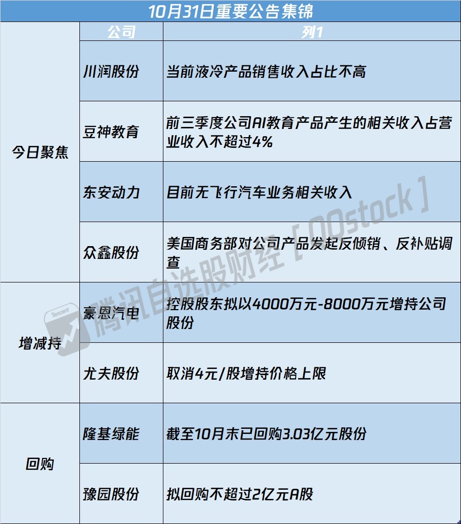 1、隆基绿能:截至10月末已回购3.03亿元股份