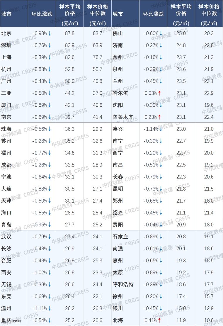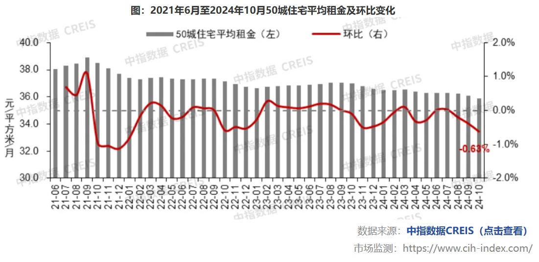 政策带动预期修复,叠加房企加快推盘、全力营销,10月多个核心城市新房销售面积环比大幅增长,受优质改善项目入市带动,百城新建住宅价格环比结构性上涨。全国50个城市住宅平均租金为35.9元/平方米/月,环比下跌0.63%,同比下跌3.03%。10月,住房租赁行业逐步迈入传统淡季,市场需求回落,重点城市平均租金小幅下跌。