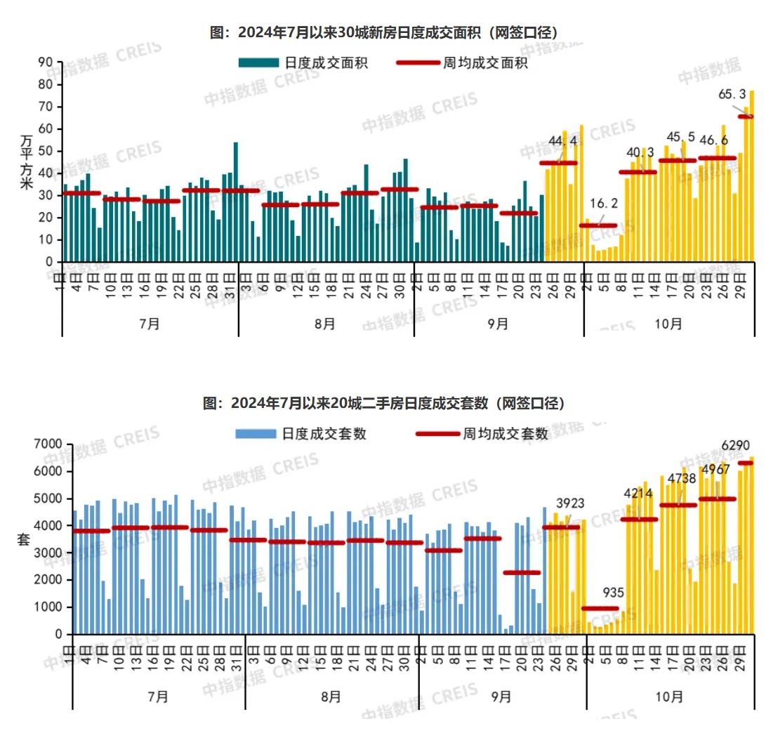 自9月底以来,房地产“一揽子”政策带动市场销售出现积极变化,预计短期核心城市销售回稳态势有望延续。接下来,若货币化安置100万套城中村和危旧房改造,以及收购存量房及闲置土地政策能够落实到位,将有助于加快改善市场供求关系,最终实现房地产“止跌回稳”目标。