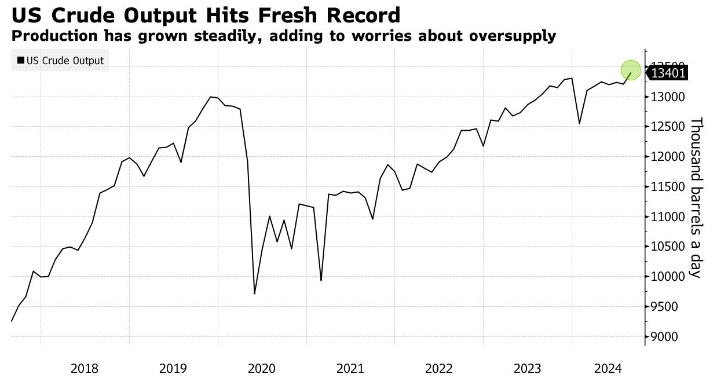今年以来,美国的产量一直在攀升,尽管速度不如以往那样迅猛,因为页岩油生产商誓言将股东回报置于产量增长之上。尽管如此,这个全球最大产油国的增长轨迹对市场产生了重大影响,市场普遍预计明年将出现供应过剩。