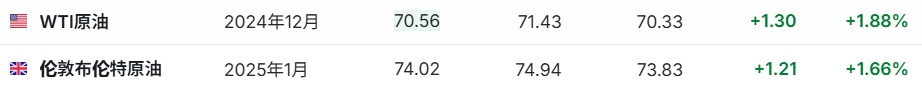 3. 截至发稿,WTI原油涨1.88%,报70.56美元/桶。布伦特原油涨1.66%,报74.02美元/桶。