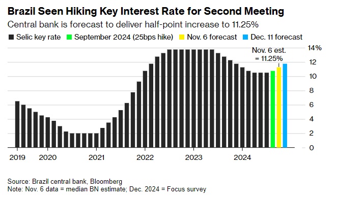 在巴西,央行行长内托对通胀预期失控的警告,以及不断上升的整体数据,让分析师预计该国周三将加息50个基点至11.25%。