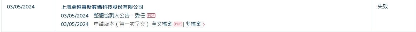 智通财经APP获悉,上海卓越睿新数码科技股份有限公司(以下简称:卓越睿新数码)于2024年5月3日所递交的港股招股书满6个月,于11月3日失效,递表时农银国际为其独家保荐人。