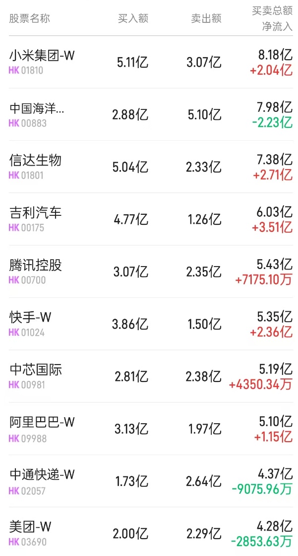 此外,小米集团-W(01810)、中国移动(00941)、融创中国(01918)分别获净买入4.52亿、3.23亿、3507万港元。而金力永磁(06680)遭净卖出165万港元。