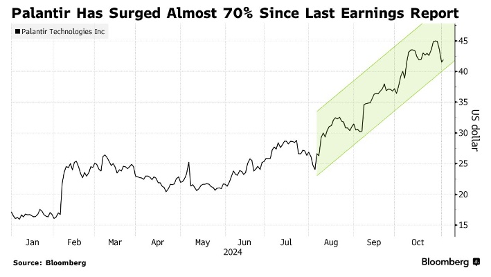 市场预期Palantir第三季度营收为7.04亿美元,同比增长26%;调整后每股收益为9美分,同比增长29%,但增速低于前几个季度。