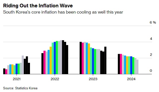 上个月,韩国央行进行了政策调整,将基准利率下调25个基点至3.25%。这一决定得到了通胀放缓和首尔房地产价格降温的支持,韩国通胀已降至央行2%的目标以下。