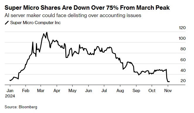 超微电脑经历了极为动荡的一年。2024年初,由于华尔街对人工智能推动的对该公司高性能机器的需求充满热情,该公司的股价一直在上涨,并被纳入标普500指数。
