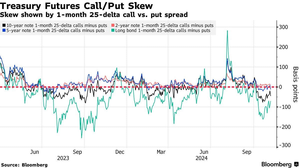 周二,看涨对冲需求持续,目标是10年期收益率低于4%。期货市场上,周一出现了新的多头押注,特别是对较长期债券的需求显著。