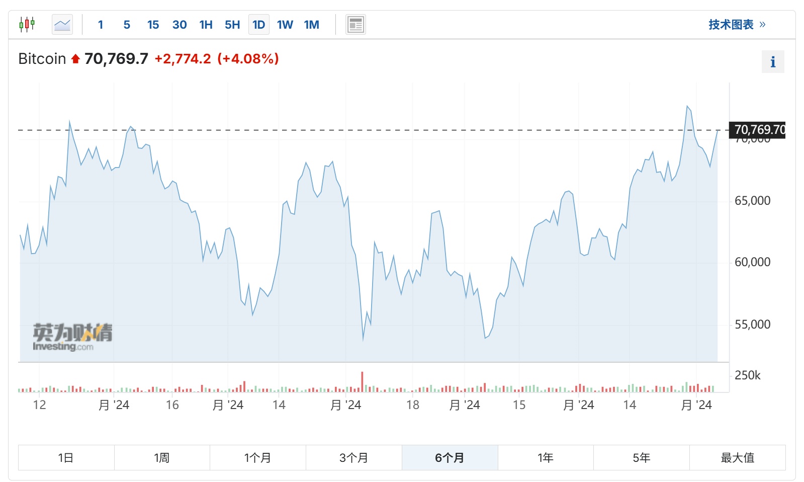 智通财经APP注意到,随着全球交易员关注美国总统大选结果的陆续出炉,比特币创下了一周来的最大涨幅,这场大选在数字资产支持者特朗普与在政府打击该行业期间担任副总统的哈里斯之间展开。截至发稿,比特币上涨 2.2% 至 70,711 美元。