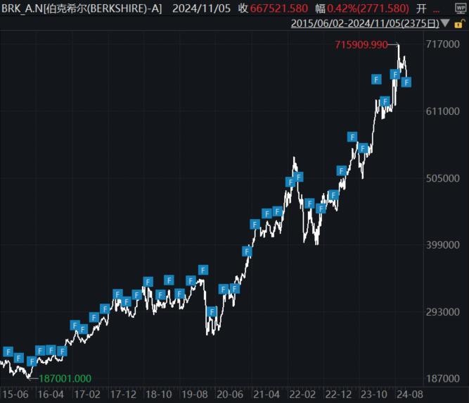 伯克希尔哈撒韦公司A类(BRK.A.US)股票周二收于667,521美元,今年迄今上涨约23%,超过同期标普500指数约21%的涨幅。