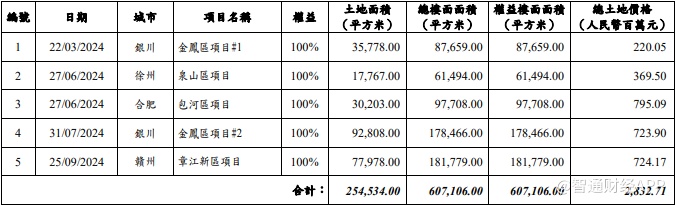 在2024年10月份,集团无新增土地储备。从2024年1月1日至10月31日期间,集团累计新增总楼面面积60.71万平方米,总土地价格人民币28.33亿元,其详情如下: