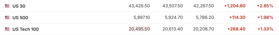 1. 11月6日(周三)美股盘前,美股三大股指期货齐涨。截至发稿,道指期货涨2.85%,标普500指数期货涨1.98%,纳指期货涨1.33%。