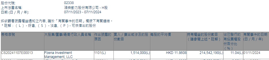 LLC增持潍柴动力(02338)151.4万股,每股作价11.8608港元,总金额约为1795.73万港元。增持后最新持股数目为2.15亿股,持股比例为11.04%。
