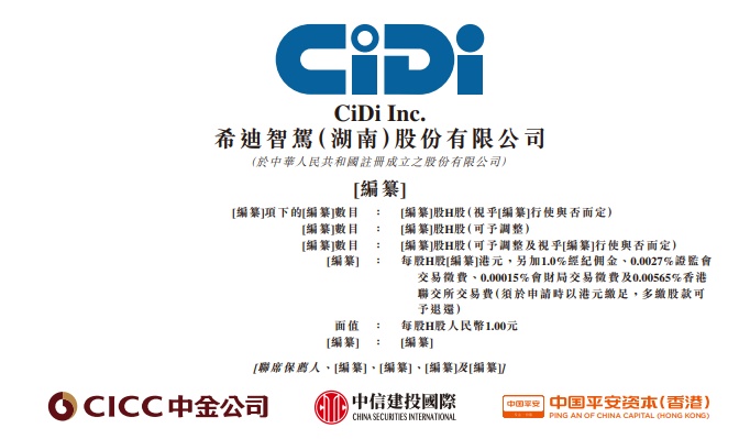 智通财经APP获悉,据港交所11月7日披露,希迪智驾(CiDi Inc.)向港交所主板递交上市申请,中金公司、中信建投国际、中国平安资本(香港)为其联席保荐人。