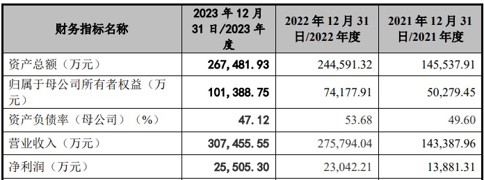 财务方面,2021年、2022年、2023年,壹连科技实现营业收入分别约为人民币14.34亿元、27.58亿元、30.75亿元,同期净利润分别约为1.39亿元、2.30亿元、2.55亿元。