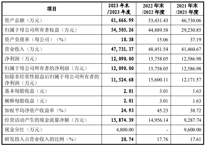 财务方面,2021年度、2022年度及2023年度,致远电子实现营收分别约为4.15亿、4.85亿、4.77亿元人民币;同期净利润分别约为1.26亿、1.58亿、1.21亿元人民币。