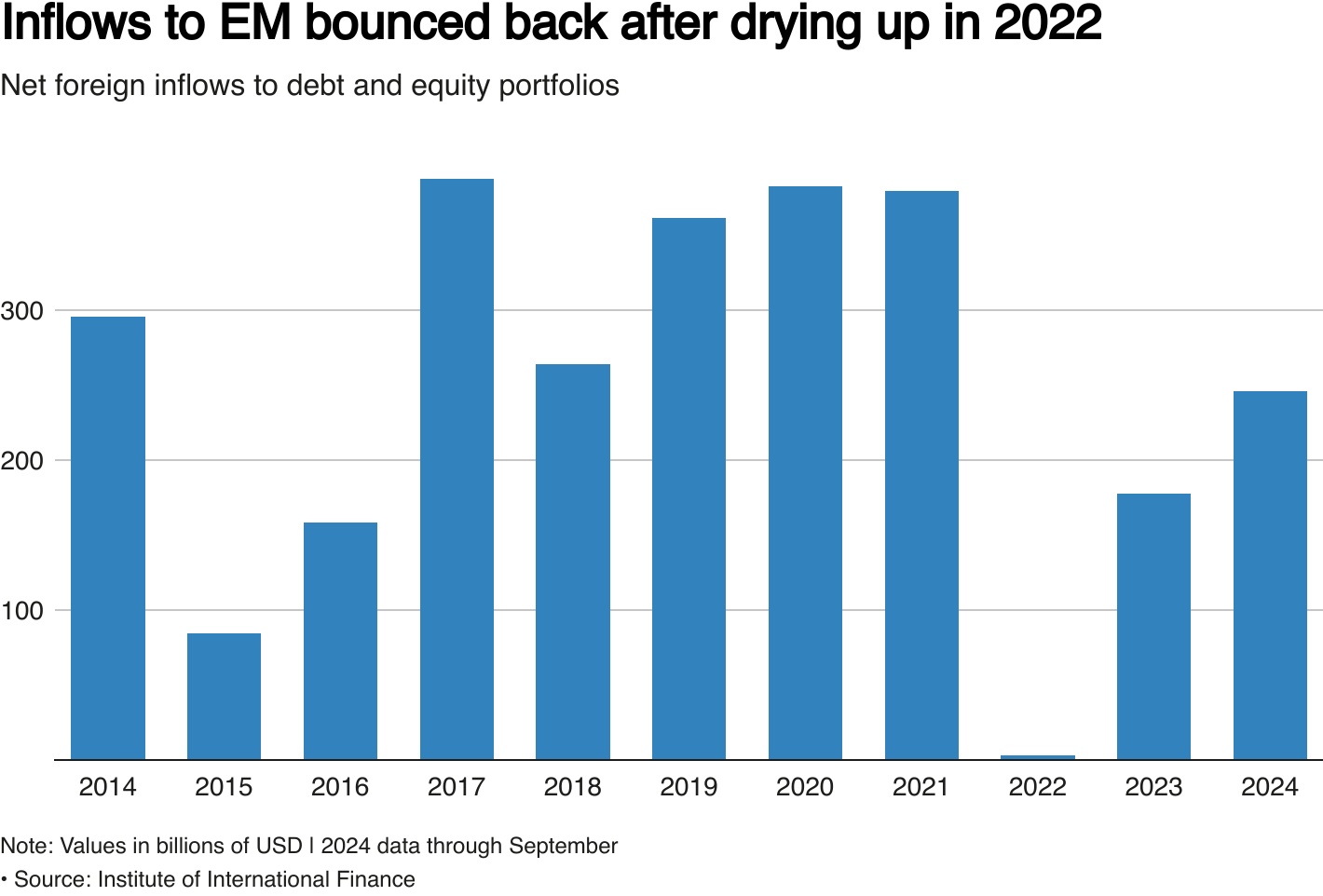 但总体而言,投资者表示,在2016年特朗普胜选后出现的恐惧、市场波动和风险厌恶情绪这一次不太可能出现,这意味着新兴市场及其内部拥有良好叙事的资产可以继续吸引资本。