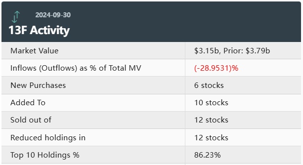 最新数据显示,景林资产第三季度持仓总市值为31.5亿美元,上一季度总市值为37.9亿美元。在第三季度的持仓组合中,新增6只个股,增持10只个股;同时清仓了12只个股,减持12只个股。其中,前十大持仓标的占总市值的86.23%。