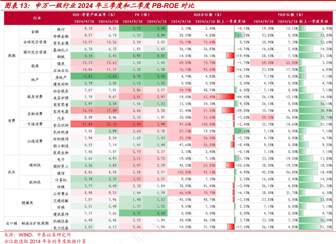 根据三季报行业盈利表现和 PB-ROE 分析,三季度后: