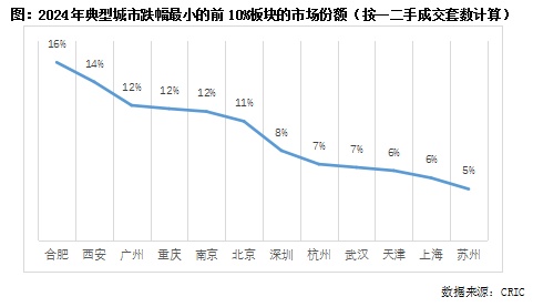 但对比历史成交峰值来看,终归还是房价抗跌板块(降幅在10%以内)的表现更佳。