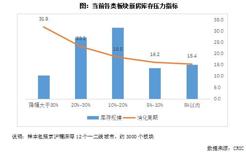 最后,建议地方主管部门增加城市优质抗跌板块的市场占有率,促进需求侧预期的转好。据研究中心测算,若抗跌板块的市场份额提升至20%,则12个样本城市的平均消化周期则可从20个月降至18个月,重新回到合理范围之内。