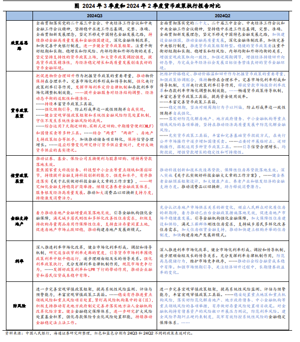 个人房贷利率继续创新低。央行公布2024年9月金融机构新发放贷款加权平均利率为3.67%,较6月小幅回落1bp。其中,一般贷款利率略有回升,环比6月上行2bp至4.15%;新发放的个人住房贷款利率继续创有统计以来的新低,环比回落14bp至3.31%。同时,票据利率也环比6月下行25bp至1.35%。专栏一中主要对我国的货币供应量统计体系进行了回顾和展望。专栏回顾了过去我国货币供应量统计的演变,包括对M0、M1、M2的定义调整;并表示,随着我国金融市场和金融创新迅速发展,符合货币供应量定义的金融工具范畴已发生了重大变化,有必要动态完善。比如,个人活期存款的流动性显著提高,已具备货币属性,还比如非银行支付机构备付金也具有类似活期存款的货币属性,均可研究纳入M1统计;同时,有必要根据金融工具的流动性发展,对M2的统计进行适时调整。专栏四主要讨论了近年来直接融资的发展对我国货币政策框架的影响。随着理财、资管等金融产品的增长,更多资金流向了债券、股票等直接融资渠道,从而减弱了传统银行体系的货币创造。存款的分流和回流,对M2造成了很大的扰动。所以,当前传统货币供应量指标的适用性已经降低。应当看到,尽管M2波动增大,但我国包含债券融资的社会融资规模增速仍保持在8%,明显高于名义GDP增速,金融对实体支持力度稳固。由此,央行表示,未来将进一步完善货币供应量统计,择机发布并适当进行历史数据的回溯。而且要看到货币供应量的可控性以及与主要经济变量的相关性正趋于减弱,因此下阶段,要继续推进货币政策调控框架转型,淡化对数量目标的关注,更加注重发挥价格型调控的作用。专栏三聚焦于我国的政策利率传导机制及其市场化改革的进展。专栏指出,我国已明确公开市场7天期回购操作利率为主要政策利率,基本形成了市场化的利率形成和传导机制。具体的,央行通过调整7天期逆回购操作利率来影响货币和债券市场利率,从而间接带动存贷款利率的变化,最终影响消费和投资需求。对于当前的传导效率,央行提到,我国政策利率能够有效传导,但在不同市场的传导效率存在差异,部分原因是存贷款市场的竞争影响。银行间的过度竞争导致贷款利率过快下降、存款利率难以下调,进而影响货币政策效果。下阶段,央行将继续推进利率市场化改革,加强银行自主定价能力,规范存贷款市场的竞争行为,确保政策利率更好地传导至市场,提高利率政策对经济调控的作用。对于当前经济环境,报告指出“周期性矛盾和结构性矛盾相互交织”、“经济发展模式转型、经济结构调整短期内可能会对经济增长产生一定影响”、“要正视困难、坚定信心”,延续了926政治局会议的表述。因此,对下阶段的货币政策展望时,央行表示,“坚定坚持支持性的货币政策立场,加大货币政策调控强度,提高货币政策精准性。”我们认为,9月24日发布会以来,政策端已经发生积极变化,而且在经济面临压力的情况下,政策暖风会持续。货币政策会保持稳健宽松基调,未来政策利率、存款利率调整仍会渐进式进行,但不会大水漫灌式强刺激。在具体操作上,报告新增“综合运用7天期逆回购、买断式逆回购、中期借贷便利(MLF)和国债买卖等多种工具”、“结合‘两重’‘两新’、房地产支持政策组合等抓手,加快推动储备项目转化,保持信贷合理增长”的表述。10月28日,央行公告启用公开市场买断式逆回购工具。我们认为,新工具为央行补充了流动性投放工具,或意味着11月和12月或将不再依赖大额续作MLF或降准的政策工具。接下来央行能够综合运用多种政策工具,维护银行间市场资金利率的稳定,保证做到“合理充裕”。同时,货币政策将加强和财政政策的协调配合,继续挖掘实体部门融资需求,稳定信贷融资表现。不过我们也认为,货币政策主要通过提供低息贷款的方式支持实体经济,需要有实体融资需求的增长配合。也就是在预期偏弱的情况下,还需要财政“逆周期”力量的作用。往后看,财政政策仍有空间,在经济稳增长的需要下有意愿在明年继续发力,而且财政的力度仍是关键,需要继续关注。风险提示:对政策的理解不到位。