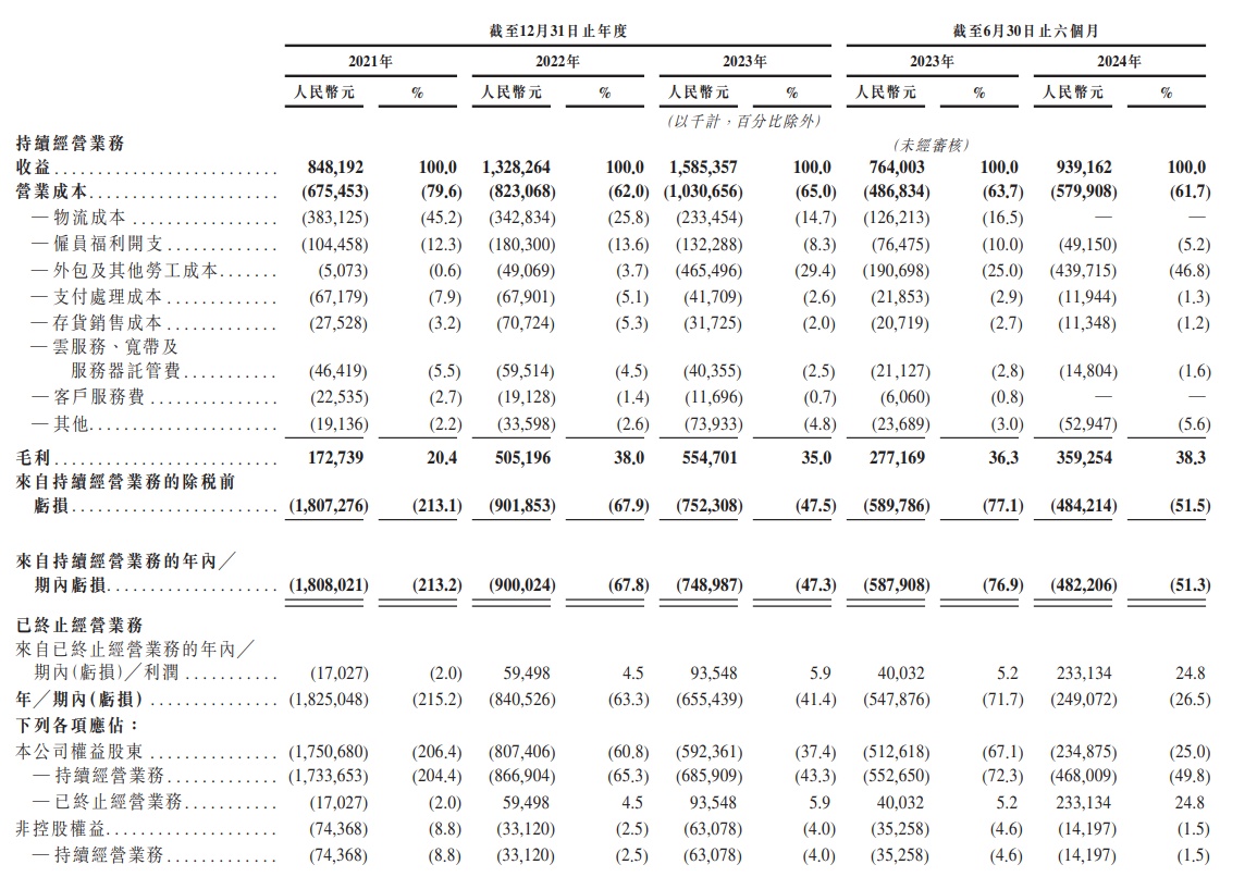 财务方面,于2021年度、2022年度、2023年度、2023年以及2024年截至6月30日止六个月,多点数智实现收益分别约为8.48亿元、13.28亿元、15.85亿元、7.64亿元、9.39亿元人民币;同期,公司实现毛利分别约为1.73亿元、5.05亿元、5.55亿元、2.77亿元、3.59亿元人民币。