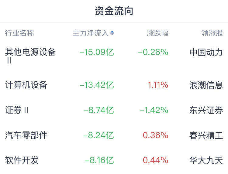 主力资金方面,资金青睐教育、橡胶等行业,资金出逃其他电源设备、计算机设备、证券等行业。