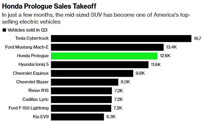 智通财经获悉,在截至9月30日的三个月里,本田汽车(HMC.US)售出了大约1.3万辆中型电动SUV Prologues。虽然该车型仍然低于特斯拉的Model Y(最畅销的电动SUV)的市场份额,但Prologue在美国电动汽车中排名第五。这款车型赢得了一波对电动汽车好奇的司机,他们一直在等待他们喜欢的汽车品牌推出一款价格合理的特斯拉替代品。