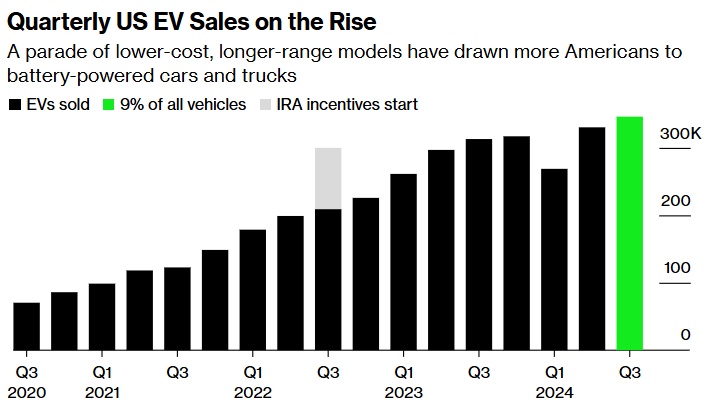 尽管人们都在谈论美国的电动汽车增长放缓,但第三季度的销售情况表明,有一大群司机只是在等待更实惠的选择,或者等待知名品牌的新电动汽车。考克斯汽车公司(Cox Automotive)的数据显示,美国司机在7月、8月和9月共购买了346,309辆电动汽车和卡车,较上一季度增长5%,较上年同期增长11%。今年第三季度,电动汽车占美国新车销量的9%,创历史最高水平。考克斯认为,每10辆汽车中就有1辆是电动汽车,这一目标“完全可以实现”。