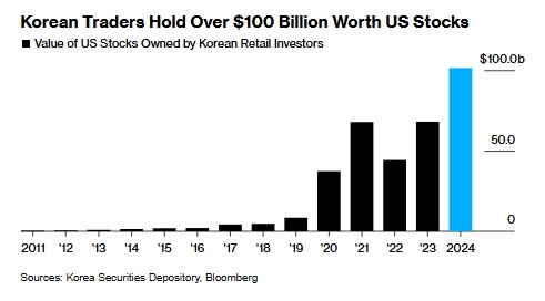 根据韩国证券信息协会的数据,截至11月7日,散户交易员总共持有价值1014亿美元的美国股票。这比上年全年增长了64%。