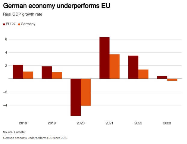 曾被称为欧洲增长引擎的德国经济自2018年以来表现落后于欧元区同行,在汽车巨头大众汽车(VWAGY.US)计划关闭德国工厂的情况下,该国经济面临进一步的痛苦。
