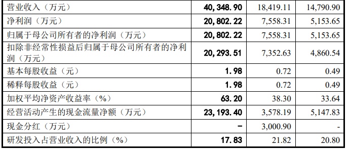 财务方面,2021年度、2022年度及2023年度,施美药业实现营收分别约为1.48亿、1.84亿、4.03亿元人民币;同期净利润分别约为5153.65万、7558.31万、2.08亿元人民币。