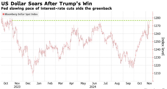 美国共和党人似乎即将获得众议院和参议院的控制权,这将使他们能够为特朗普计划的减税、移民和贸易政策以及他的提名铺平道路。以Meera Chandan为首的摩根大通策略师在一份报告中写道:“选举结果放大了美元的例外主义。没有其他货币拥有美元所拥有的:优越的经济增长和股市,更高的收益率,防御性的属性。”