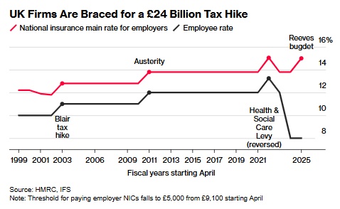 工党政府的首份预算也给物价和工资前景蒙上了阴影,财政大臣蕾切尔·里夫斯宣布增加公共投资借款,再次大幅提高最低工资,并大幅提高雇主的国民保险缴款。