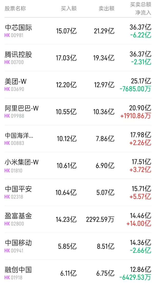 此外,小米集团-W(01810)获净买入7.88亿港元。而中国移动(00941)、中海油(00883)分别遭净卖出7.51亿、630万港元。