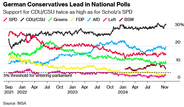 德国行业游说团体也呼吁尽快举行大选,他们认为,鉴于当前的地缘政治动荡,德国迫切需要政治稳定。